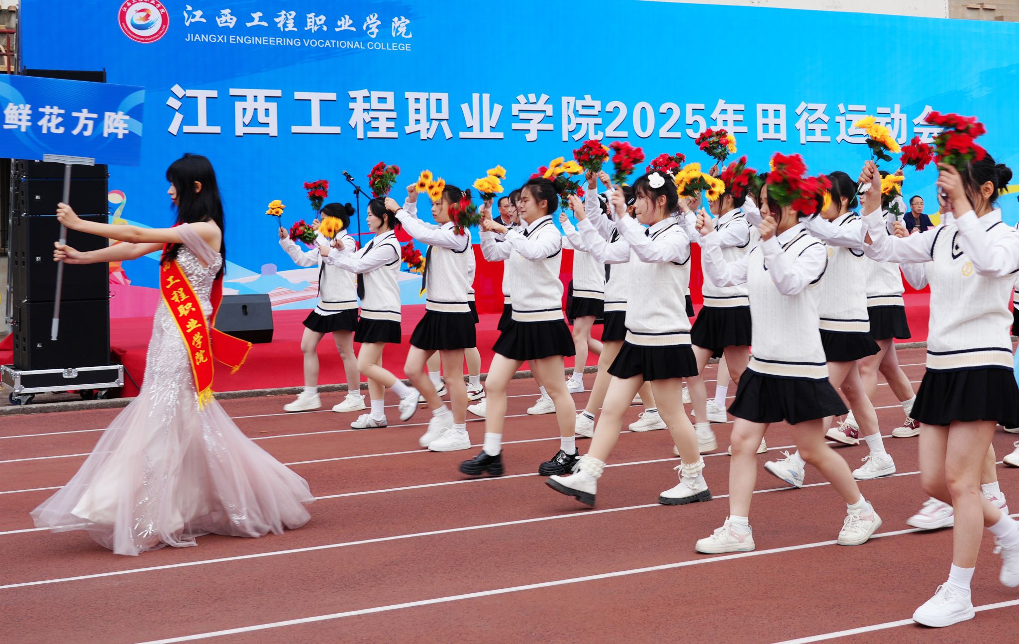 11月13日,学校2025年田径运动会开幕式在青山湖校区运动场举行。学校党委书记花严红出席并宣布运动会开幕,党委委员、副校长王涛致开幕词,在家校领导出席开幕式。开幕式由党委委员、副校长杨慆主持。